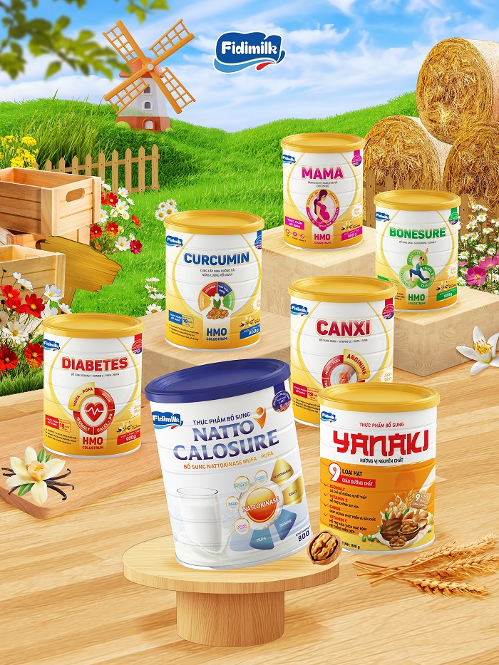 Từ nền tảng sản xuất và hợp tác với các đơn vị gia công, Fidimilk phát triển danh mục sản phẩm dinh dưỡng với nhiều dòng sản phẩm khác nhau, hướng tới đáp ứng nhu cầu của nhiều nhóm đối tượng trong gia đình.