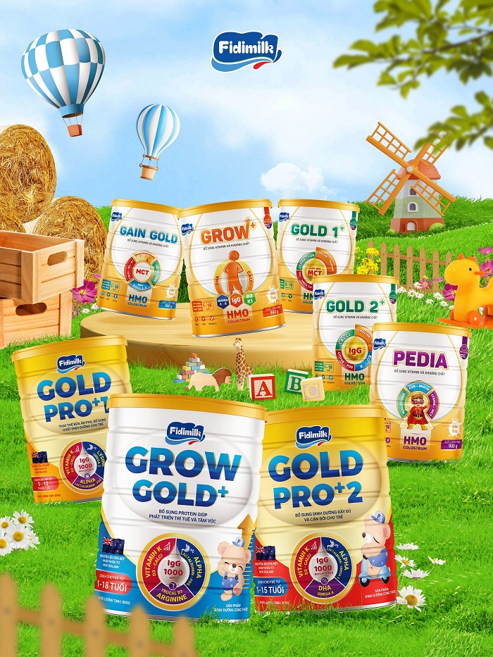 Nhờ nền tảng sản xuất vững chắc, Fidimilk đã xây dựng được danh mục sản phẩm đa dạng và chuyên sâu, phù hợp với từng giai đoạn phát triển và nhu cầu dinh dưỡng khác nhau:
