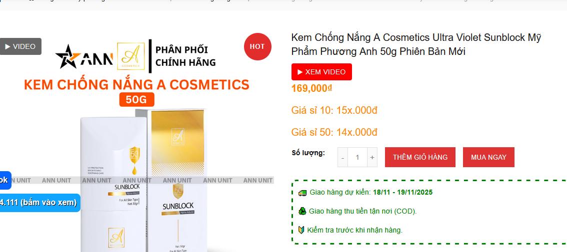 Lô sản phẩm vi phạm có tên đầy đủ là A Cosmetic mềm Perfume Protect Whitening Body Cream Moisture Whitening SPF45+, hộp 1 lọ 150g, số lô 262024. Đơn vị chịu trách nhiệm đưa sản phẩm ra thị trường là Công ty TNHH sản xuất thương mại dịch vụ đầu tư mỹ phẩm Phương Anh (quận Tân Phú, TP HCM). Đơn vị sản xuất là Công ty TNHH sản xuất mỹ phẩm Kachi-H (tỉnh Tây Ninh).